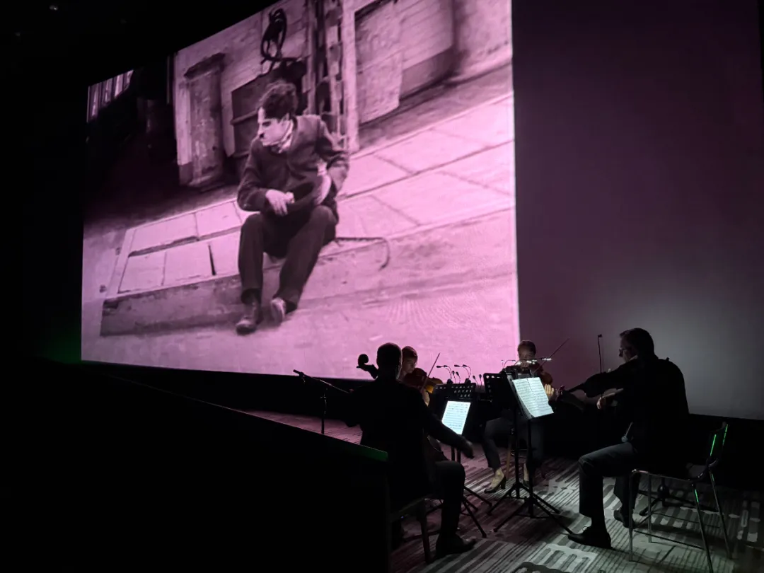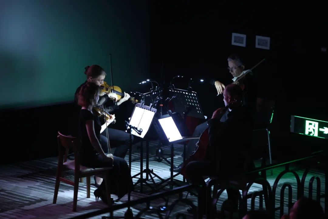 影厅内,四位法国艺术家静坐银幕一侧。小提琴的轻盈跳跃,与大提琴的醇厚低吟相辅相成,为银幕上经典的默片表演注入了全新的生命力。在影院独特的复古氛围里,无声的欢笑与有声的旋律,交织出一场奇妙的感官盛宴。